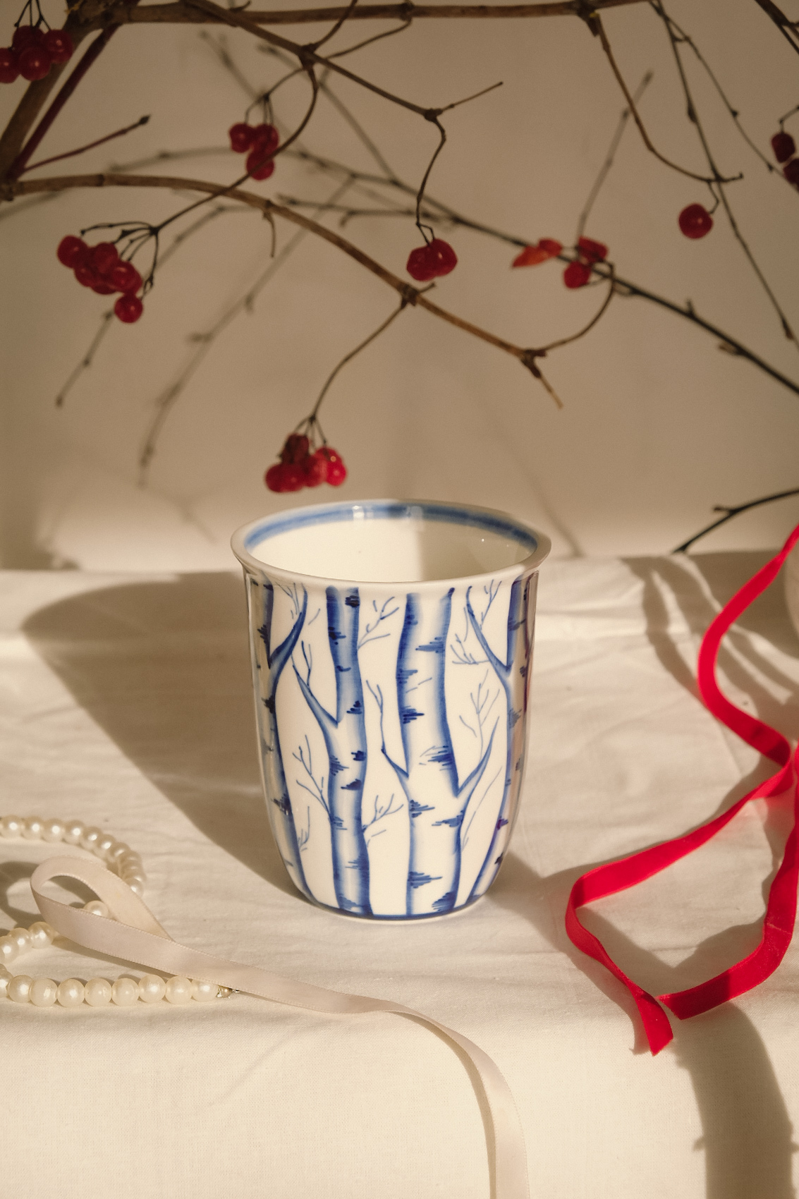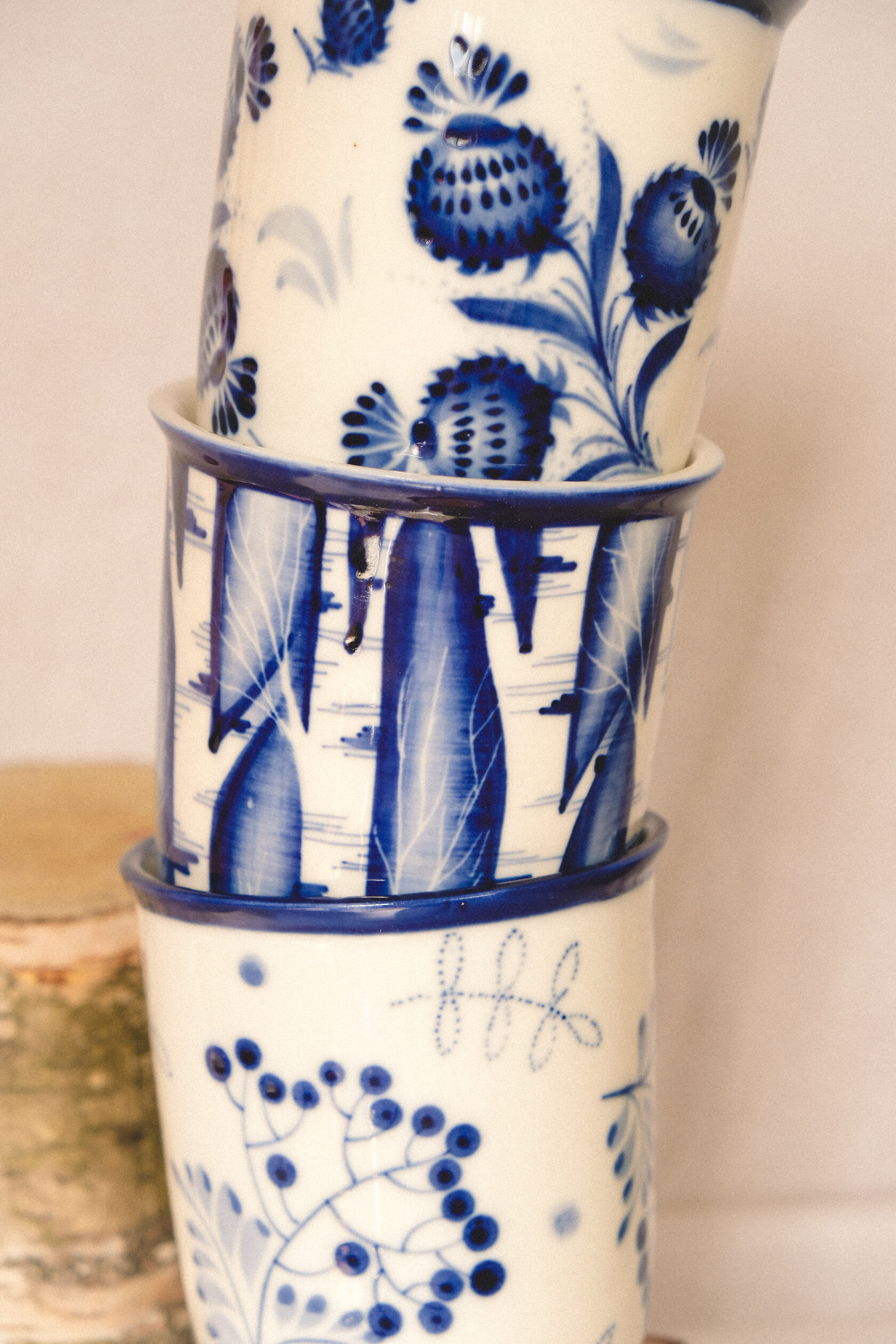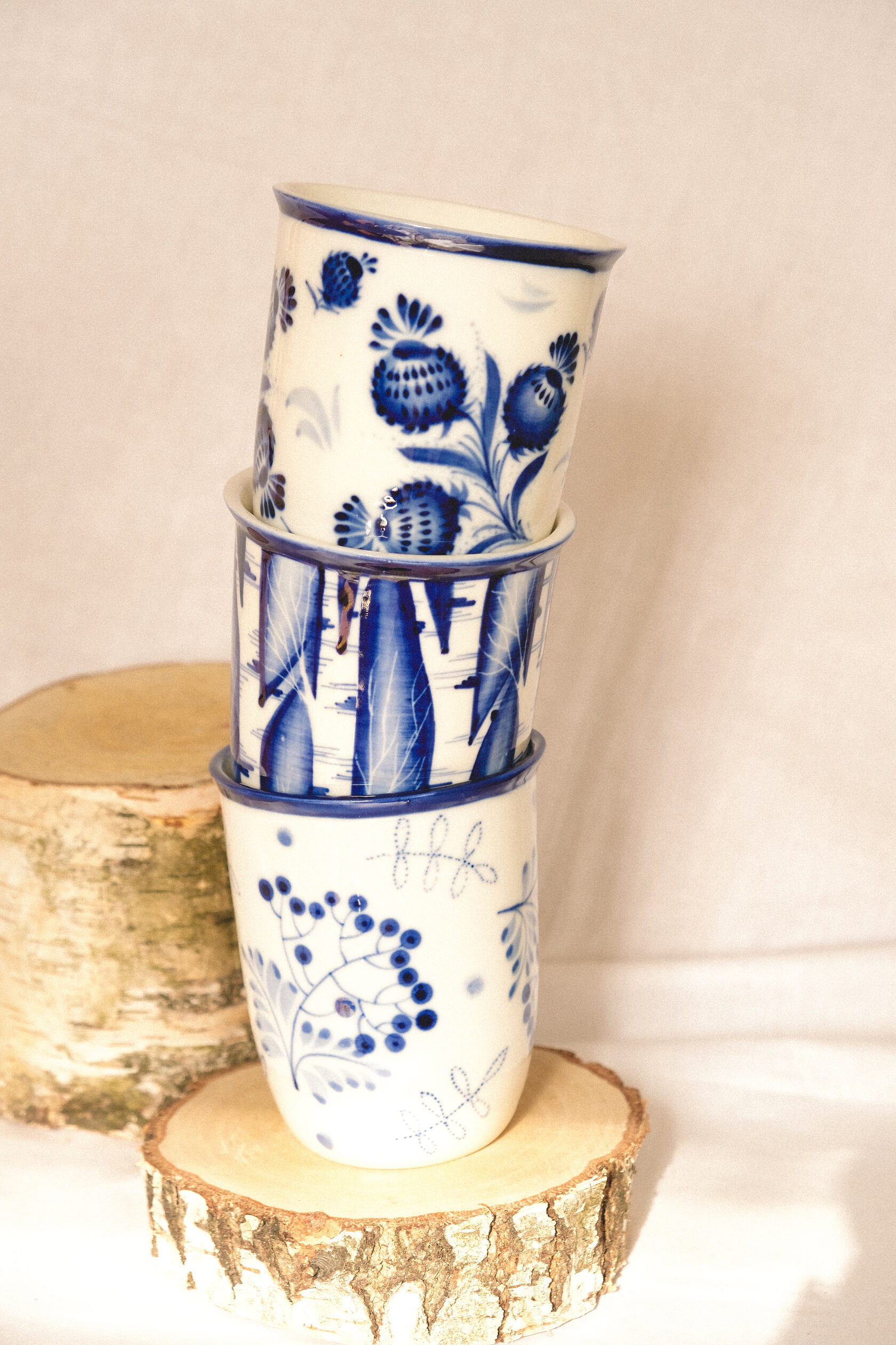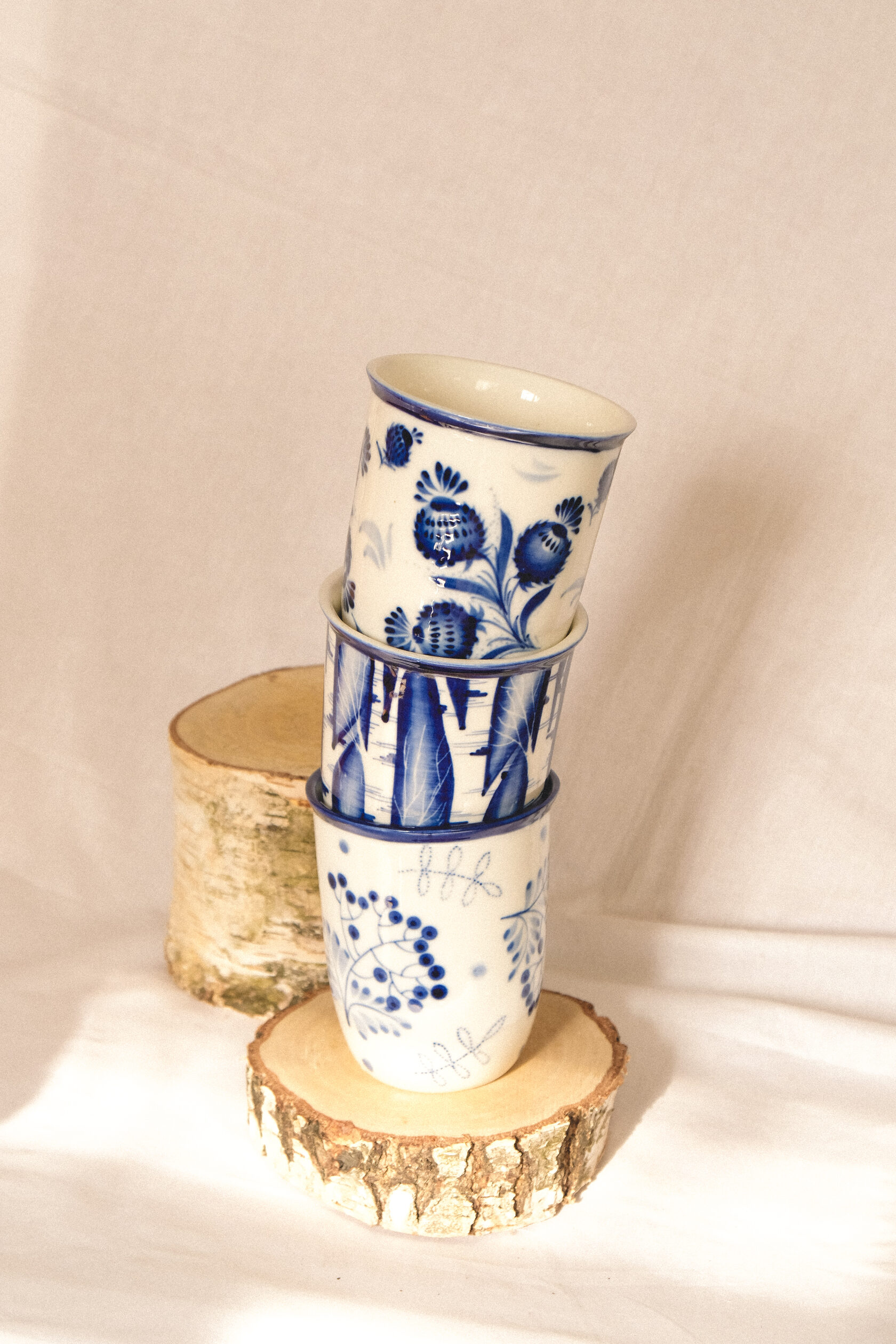 Фарфор, кобальт. Объём 400 мл Набор из трёх стаканчиков Полностью ручная роспись!