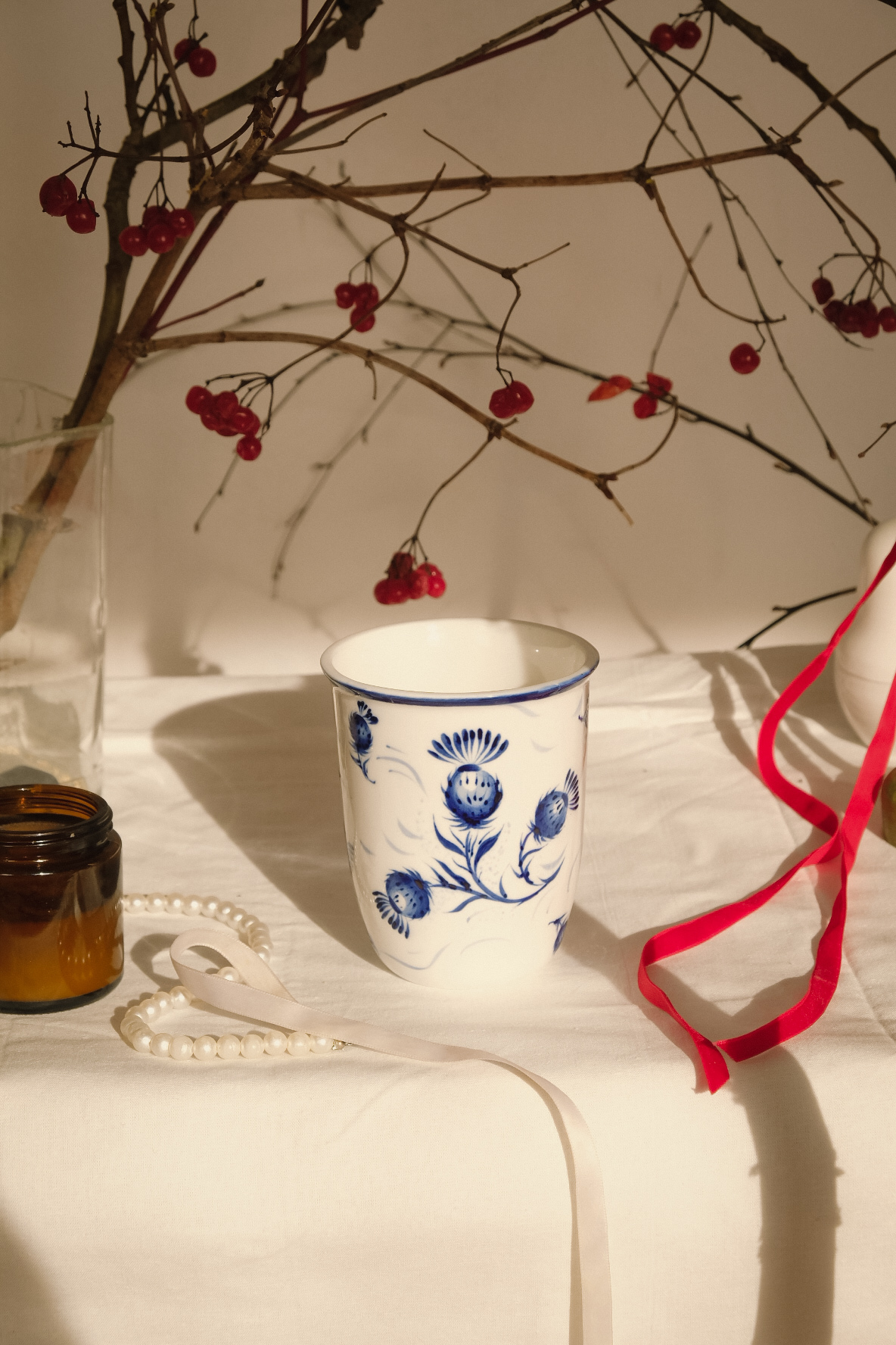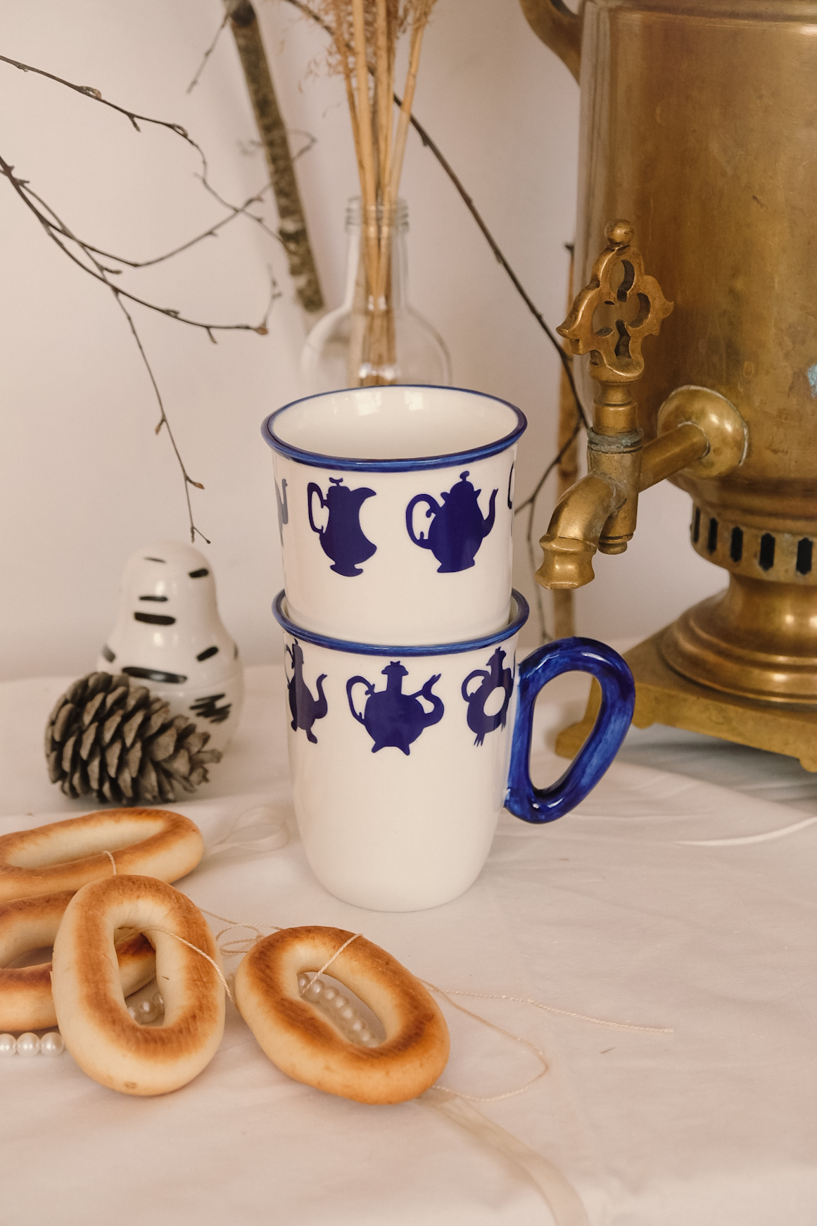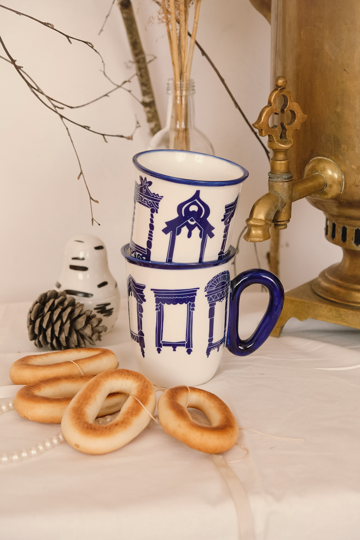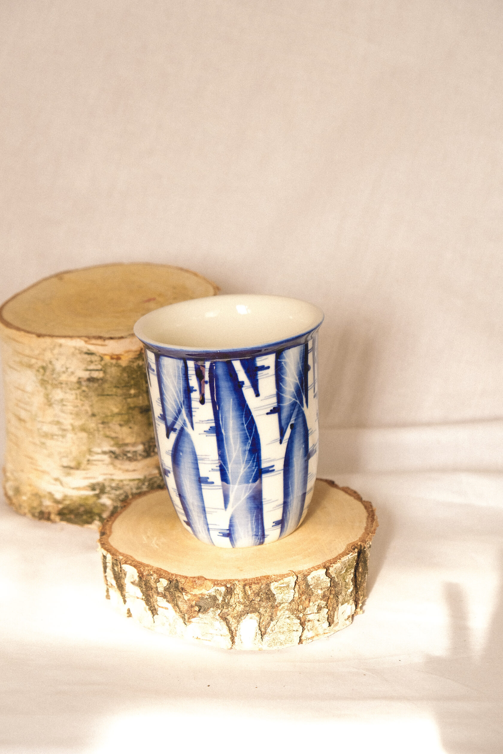 Фарфор, кобальт. Объём 400 мл Набор из трёх стаканчиков Полностью ручная роспись!