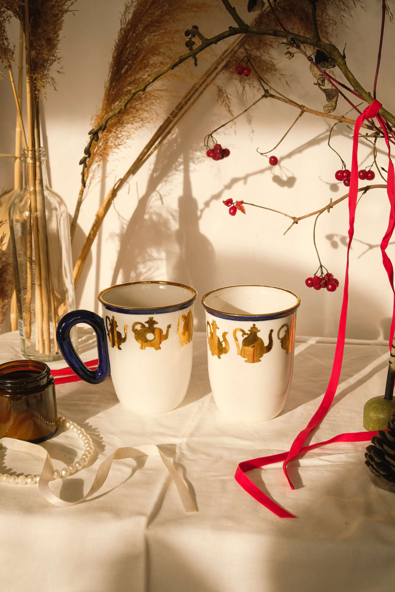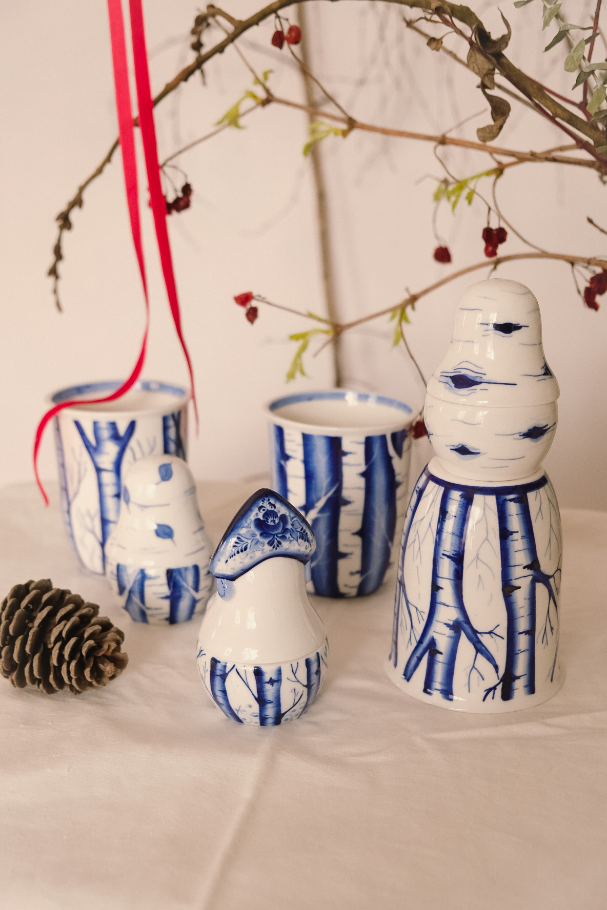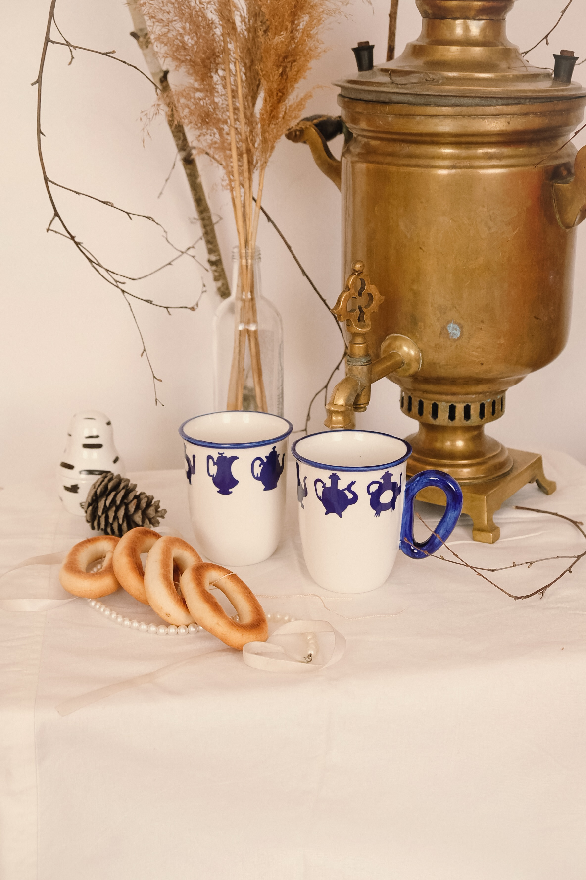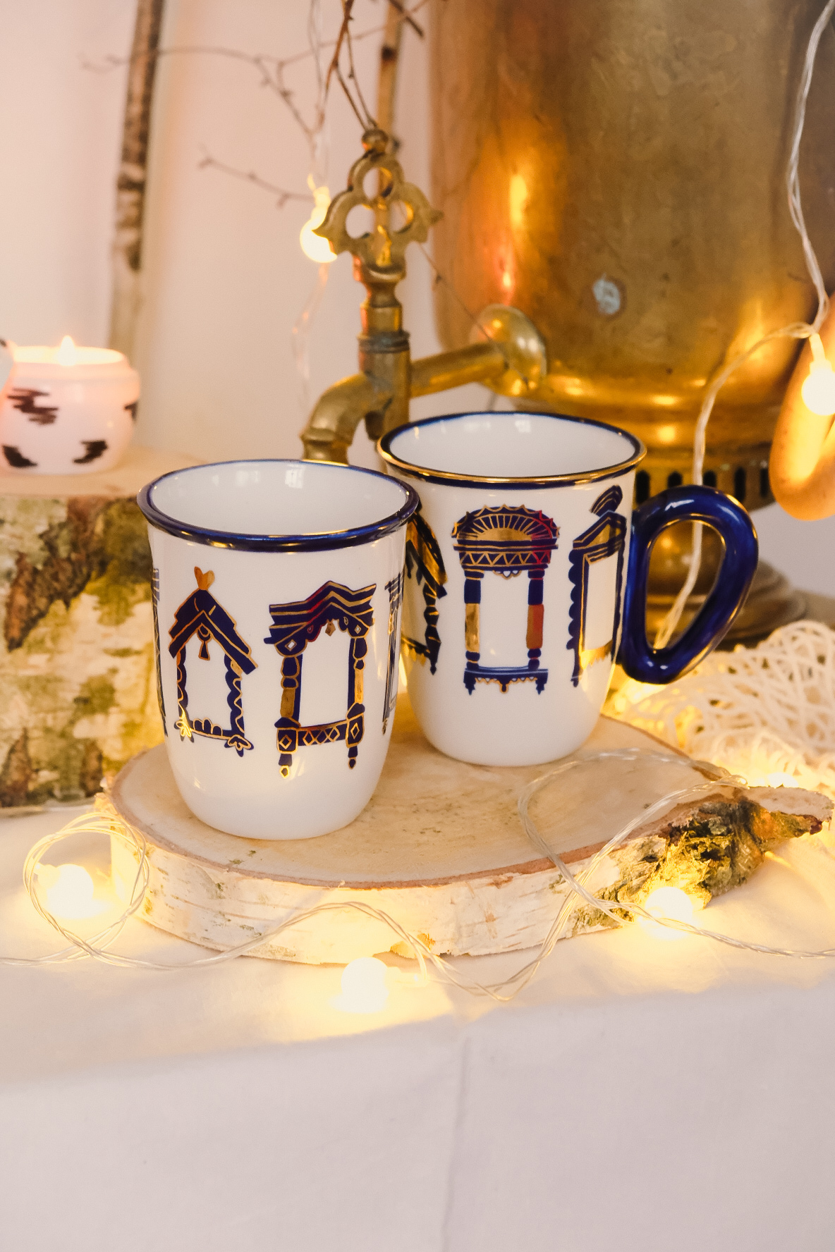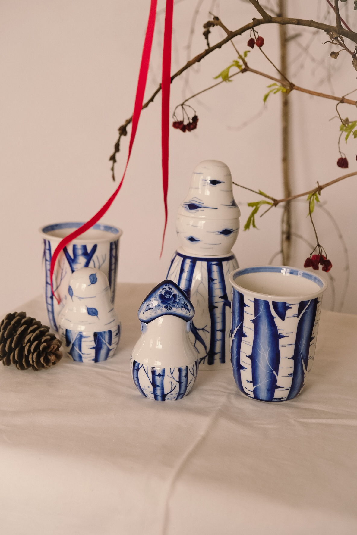 Фарфор, кобальт. Объём 400 мл Набор из трёх стаканчиков Полностью ручная роспись!