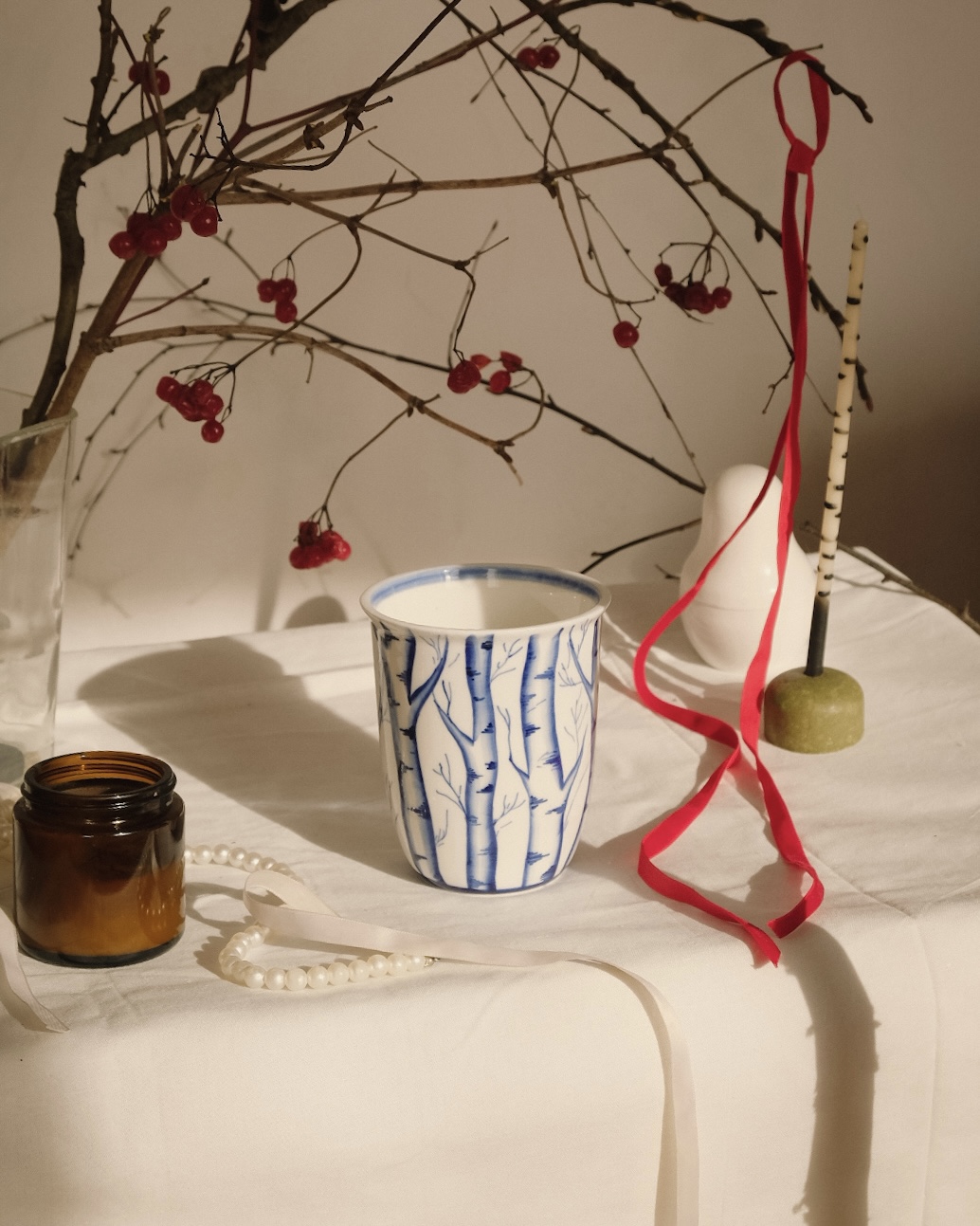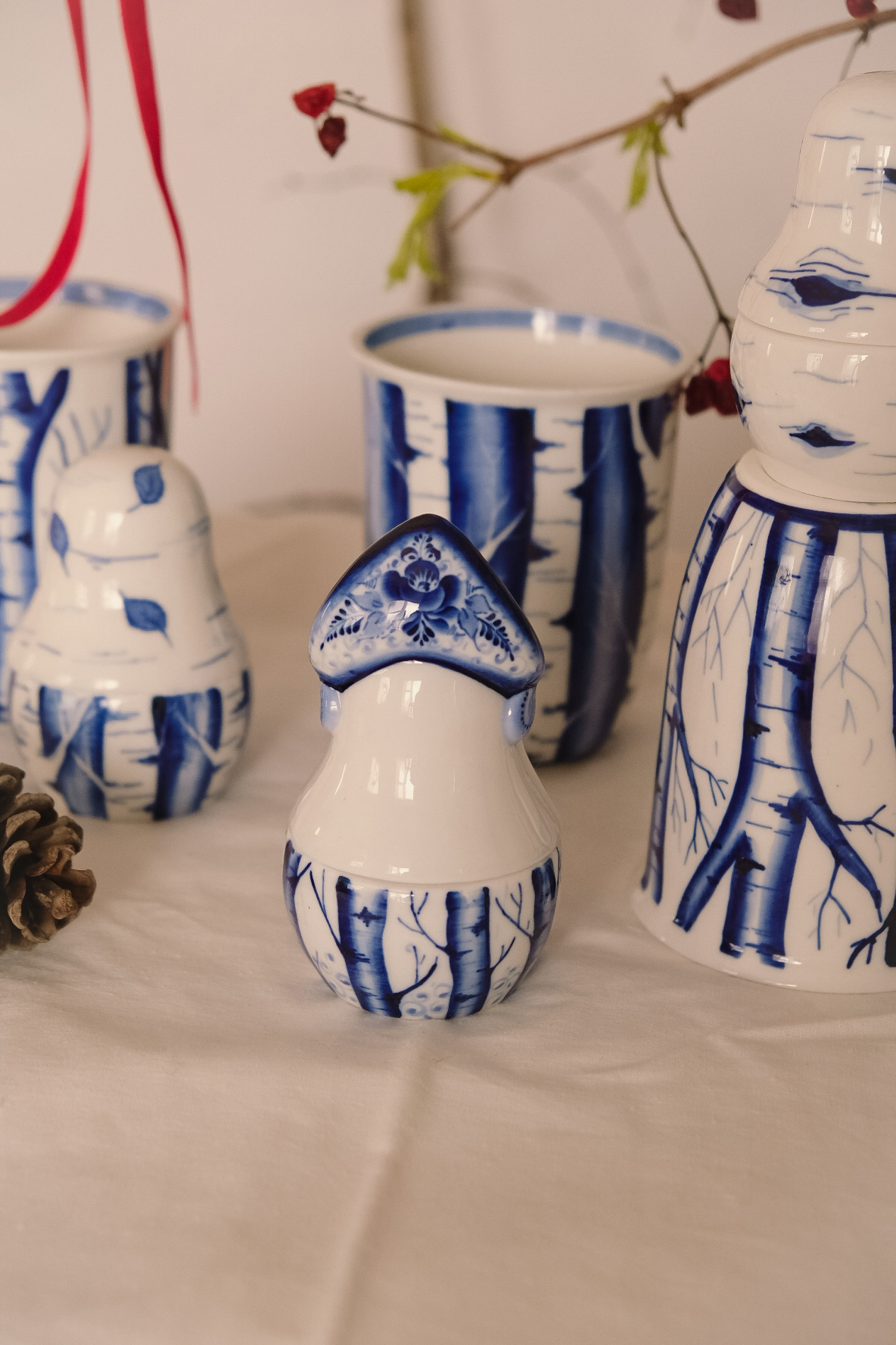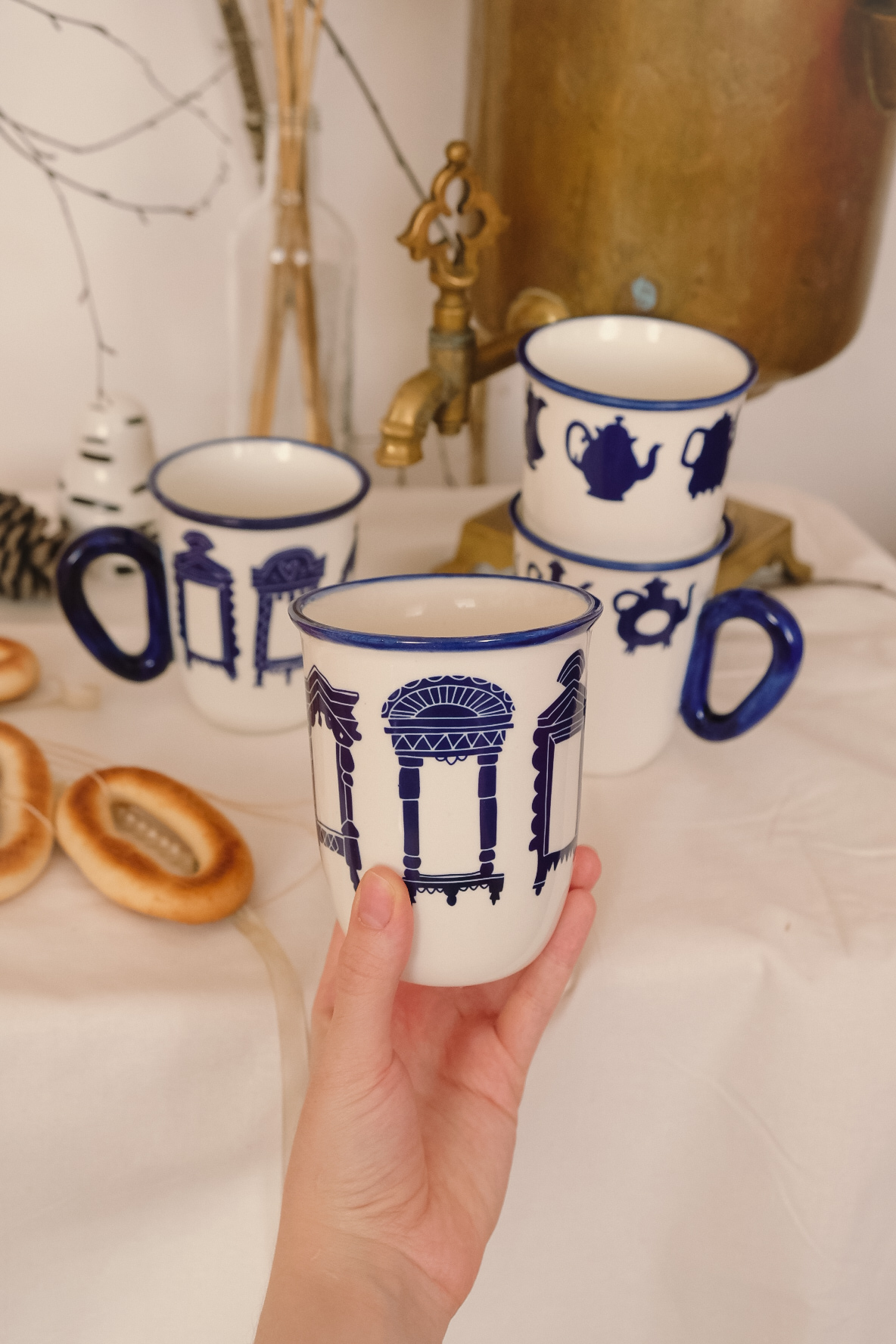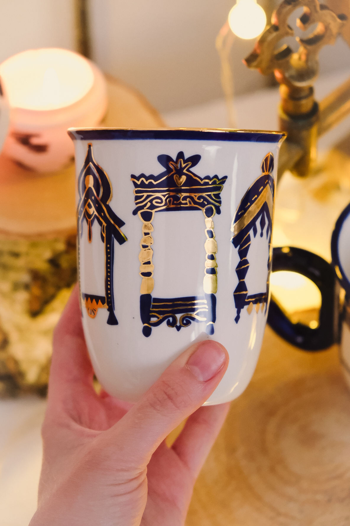 Фарфор, кобальт. Объём 400 мл Набор из трёх стаканчиков Полностью ручная роспись!