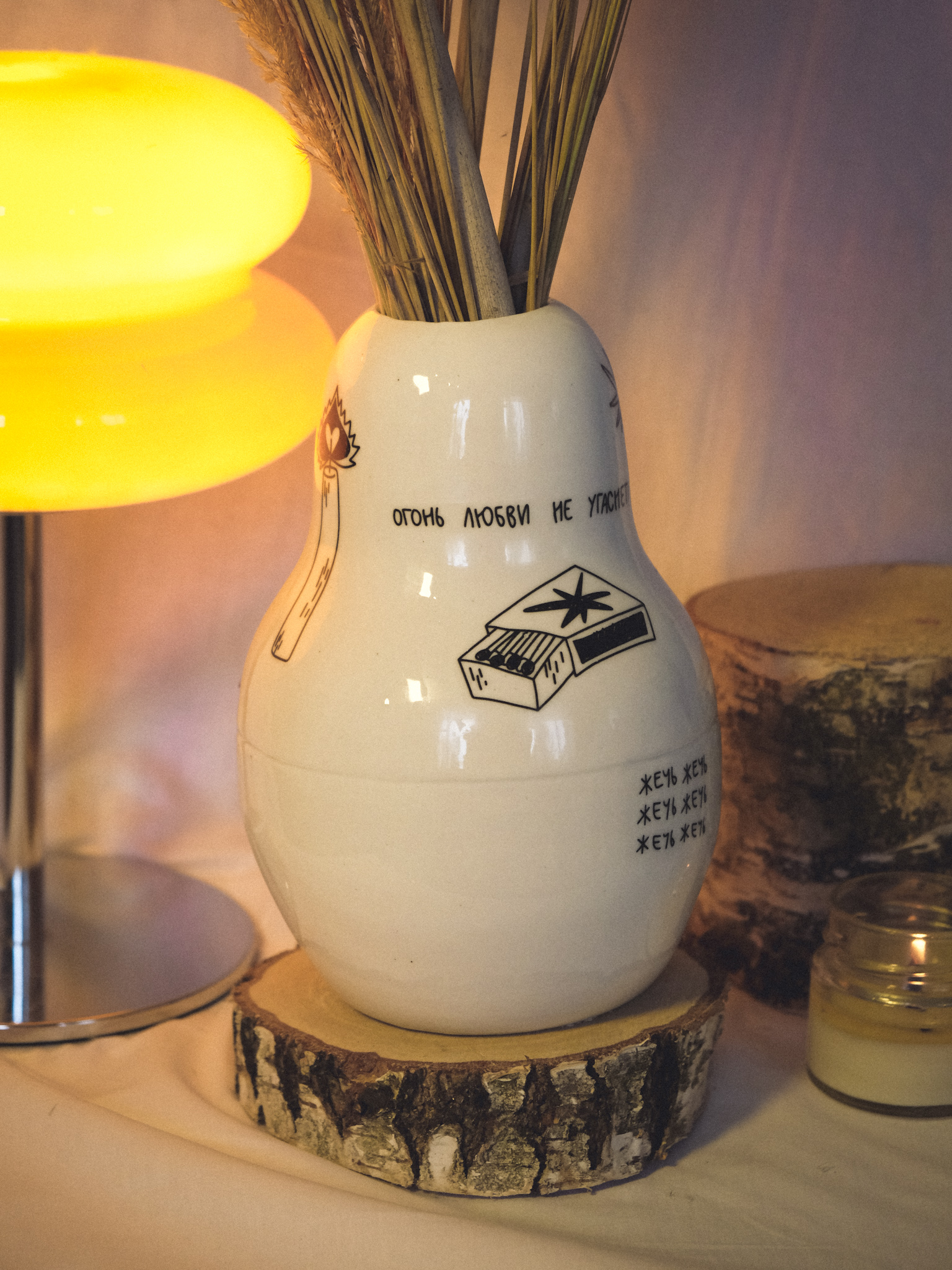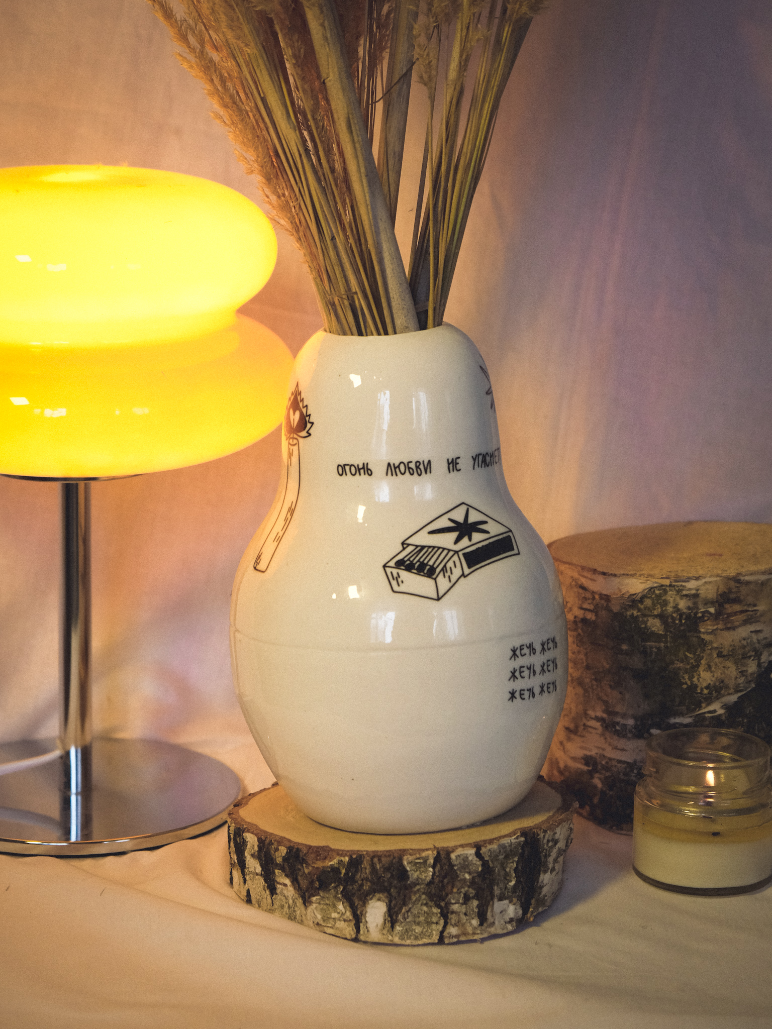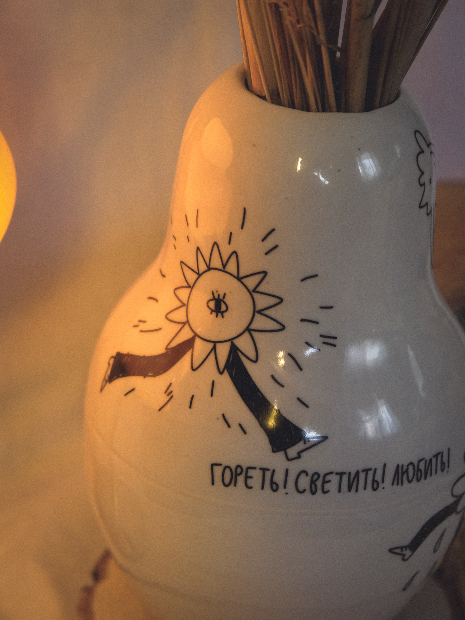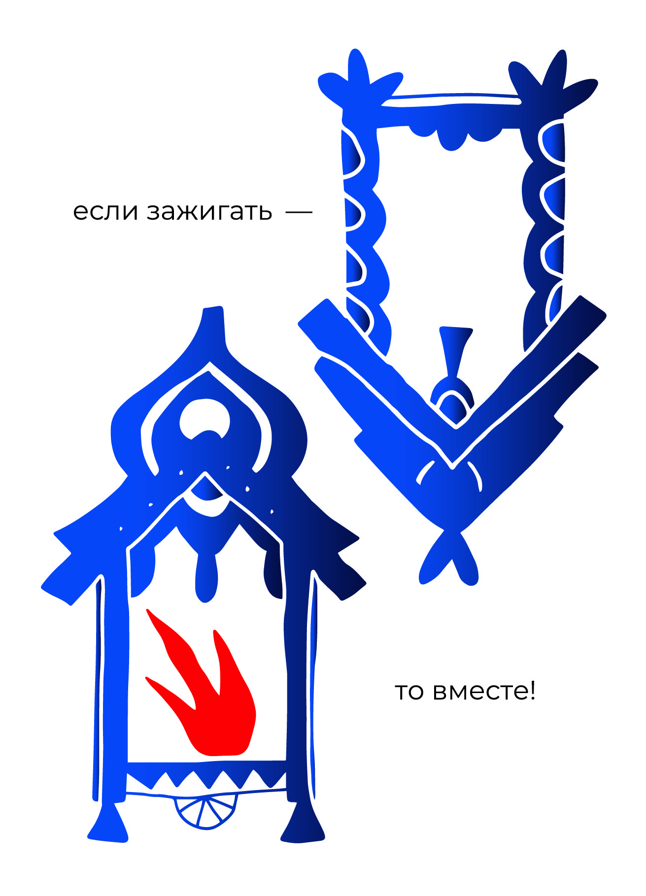 Гжель — от древнерусского глагола "жгель" — жечь, обжигать. Огонь — символ силы, любви и знаний! ЖЕЧЬ — про мощную стихию, домашний очаг и про то, что помогает сохранить керамику на века.