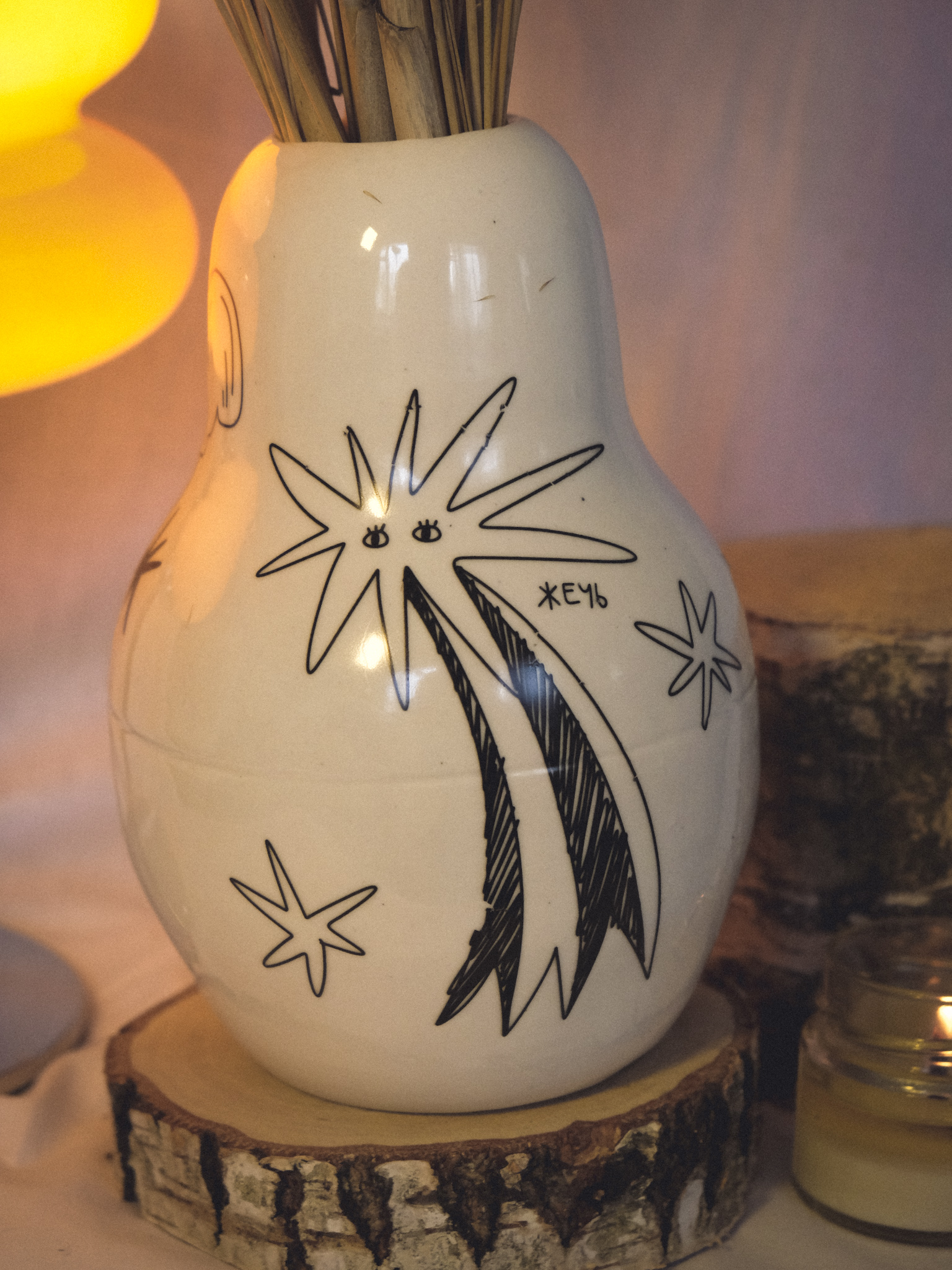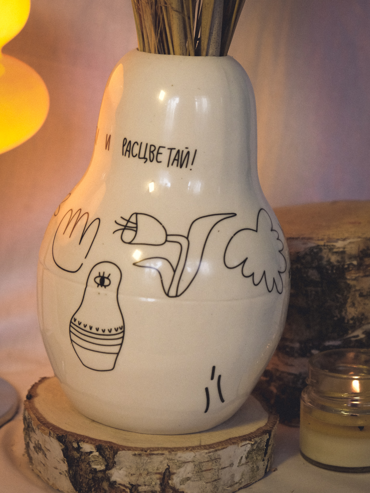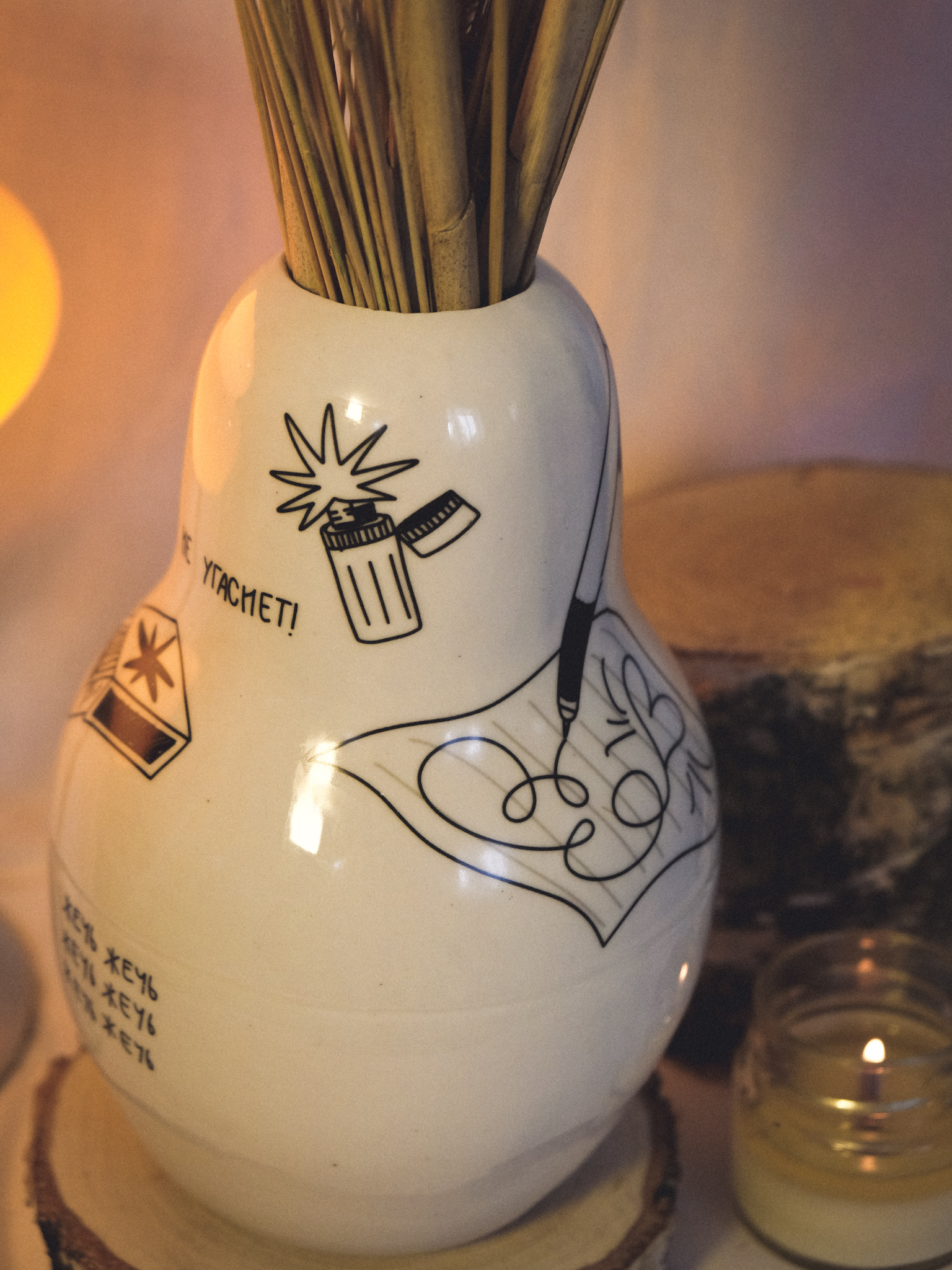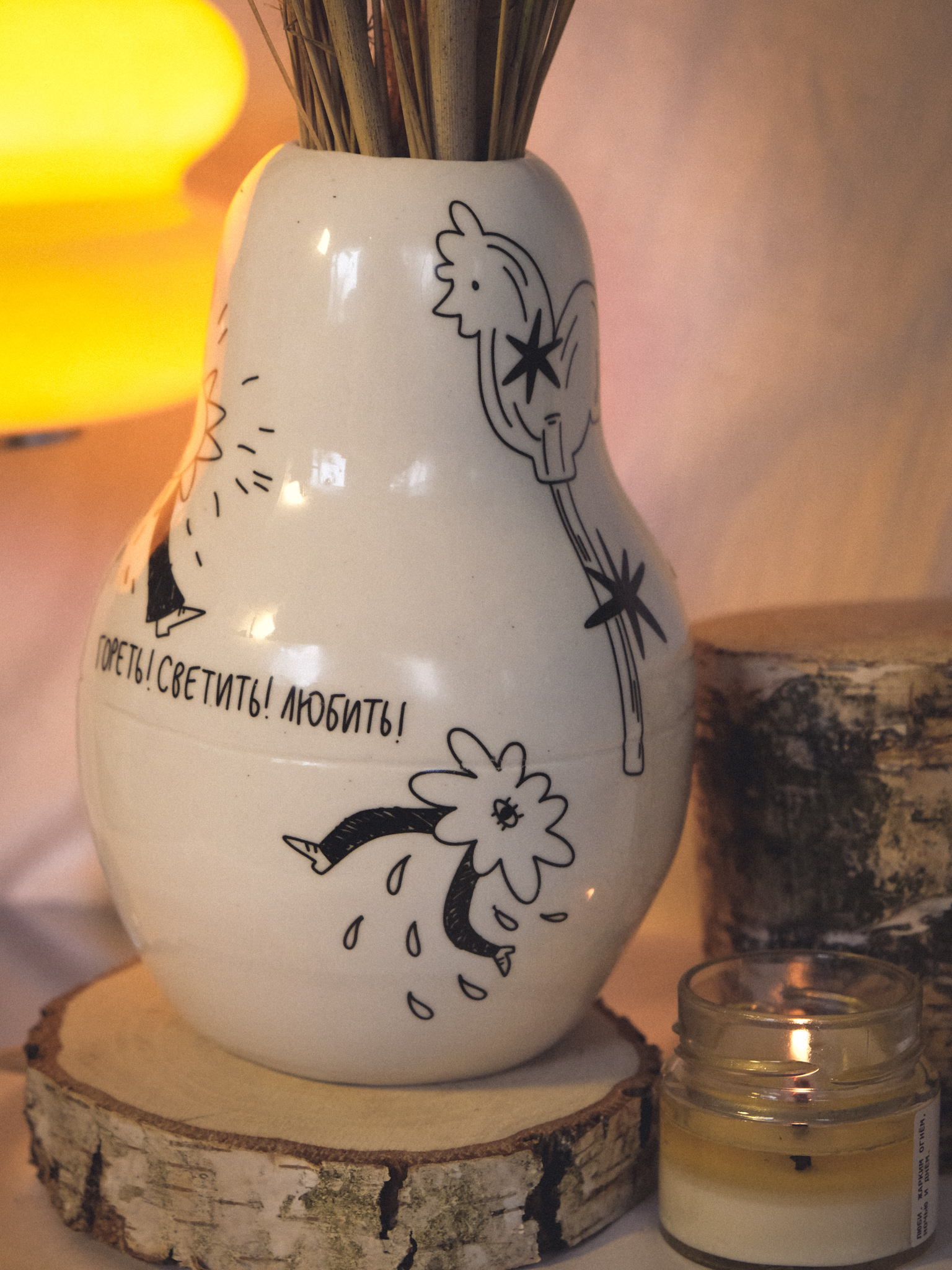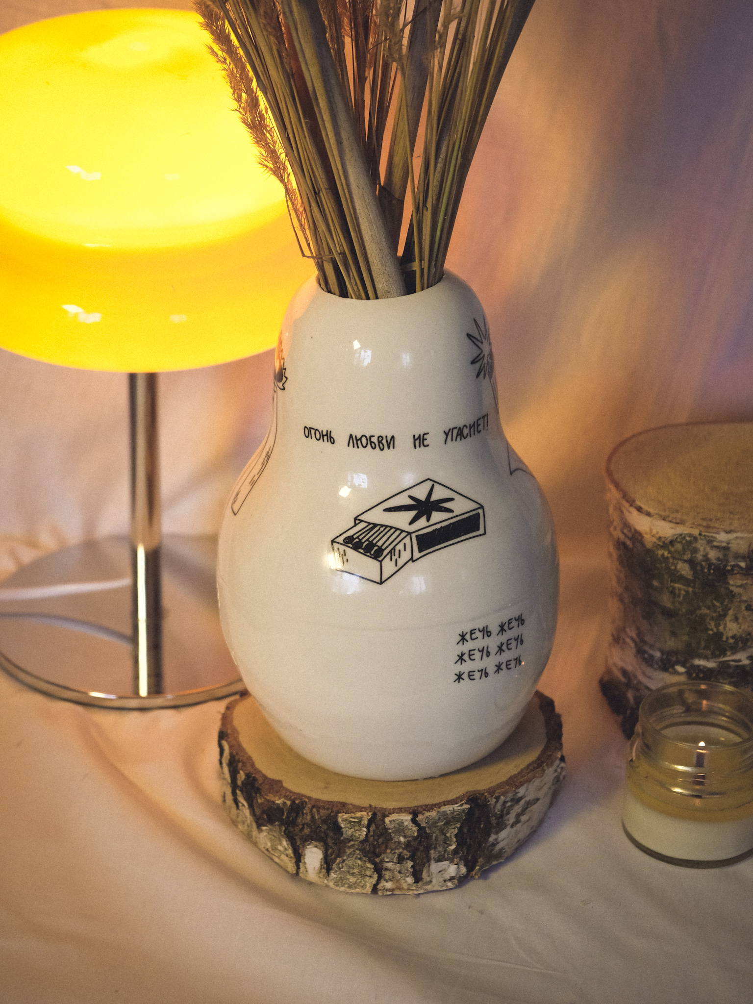 Гжель — от древнерусского глагола "жгель" — жечь, обжигать. Огонь — символ силы, любви и знаний! ЖЕЧЬ — про мощную стихию, домашний очаг и про то, что помогает сохранить керамику на века.